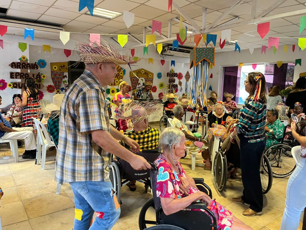 Comidas típicas, roupa quadriculada, chapéu de palha, músicas juninas, decoração com bandeirolas e balões, além de muita animação. Assim foi o tradicional forró do Abrigo D. Pedro II, realizado pela Secretaria de Promoção Social, Combate à Pobreza, Esportes e Lazer (Sempre), para os idosos acolhidos na unidade.