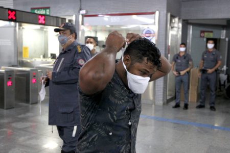 Máscaras para evitar a contaminação pela Covid-19 estão sendo distribuídas, gratuitamente, pelo Corpo de Bombeiros Militar da Bahia (CBMBA), em todas as estações de metrô em Salvador. Conforme estabelece a Lei Estadual 14.261, sancionada pelo governador Rui Costa, a obrigatoriedade do uso do acessório passa a vigorar nesta sexta-feira (8).