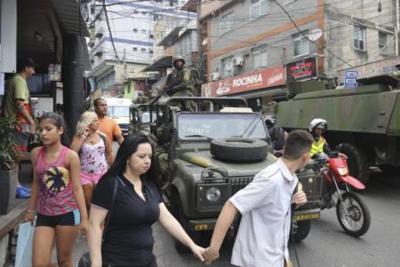 Pelo quarto dia consecutivo, 950 homens das Forças Armadas continuam com o cerco à Favela da Rocinha, em São Conrado, zona sul do Rio de Janeiro. O clima é de aparente tranquilidade e as pessoas tentam retomar a rotina normal saindo de casa para o trabalho.