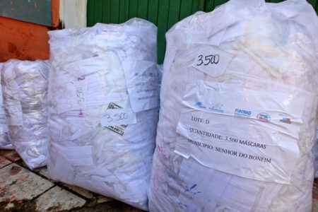 Mais 100 mil máscaras de proteção foram entregues nesta sexta-feira (12), pela Secretaria do Trabalho Emprego Renda e Esportes, em parceria com o Ministério Público do Trabalho, para entidades de Salvador e Lauro de Freitas. As 100 mil máscaras, que ajudam na prevenção da Covid-19, foram confeccionadas por meio do programa “Trabalhando em Rede no Combate ao Coronavírus”, por costureiras das instituições Central da Cidadania e Cidadania e Vida.