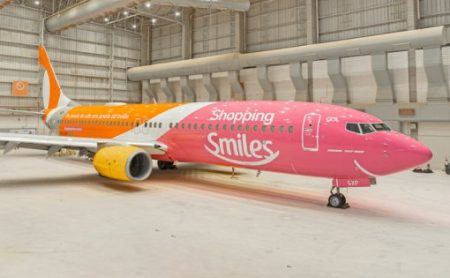 Para marcar o lançamento do novo Shopping Smiles, a Gol traz uma aeronave Boeing 737-800 de matrícula PR-GXP com uma pintura customizada. O processo de pintura foi realizado no hangar da Gol Aerotech, unidade de negócios especializada em manutenção, reparos e revisões de aeronaves e componentes, que fica localizado no aeroporto de Confins (BH).