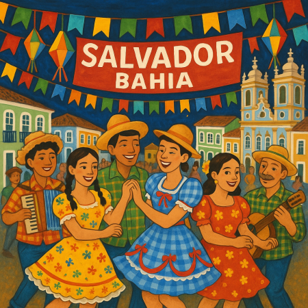 O coração da cidade se transforma em um grande arraial, com celebrações espalhadas por locais icônicos como a Praça Municipal, Praça da Sé, Terreiro de Jesus, Largo do Pelourinho e Santo Antônio Além do Carmo. A programação inclui shows de forró, apresentações de quadrilhas, comidas típicas e decoração tradicional com bandeirolas e balões coloridos.