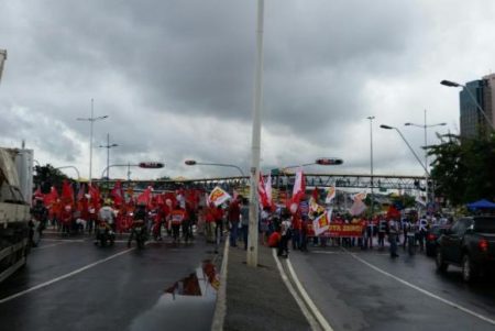 Integrantes de movimentos sociais e centrais sindicais participaram na manhã desta segunda-feira (29), em Salvador, de manifestação contra o impeachment da presidenta afastada Dilma Rousseff, que está sendo julgado no Senado Federal. No início da sessão, Dilma apresentou sua defesa e, neste momento, responde a perguntas de senadores que se inscreveram previamente para questioná-la.