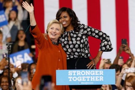 A candidata à presidência dos Estados Unidos pelo partido Democrata, Hillary Clinton, recebeu o apoio da primeira-dama Michelle Obama, durante um comício em Winston-Salem, no estado da Carolina do Norte
