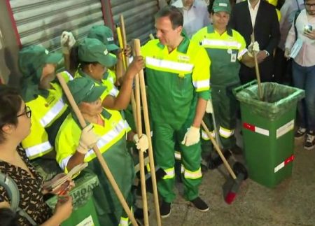 O novo prefeito de São Paulo, João Doria, se vestiu de gari ao lado de seus secretários às 6h desta segunda-feira (2), primeiro dia de trabalho no tucano à frente da prefeitura de São Paulo.