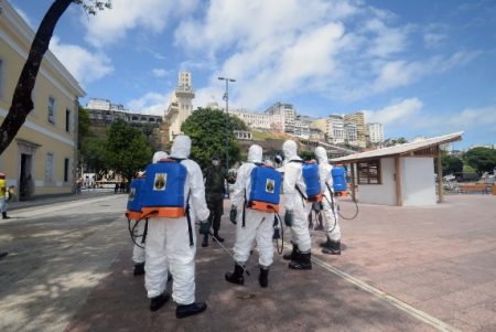 Uma ação da Secretaria Municipal de Cultura e Turismo (Secult), realizada com o apoio do Comando Conjunto Bahia formado pela Marinha do Brasil, Exército Brasileiro e Força Aérea Brasileira, promoveu a desinfecção de importantes pontos turísticos da cidade na manhã desta ultima quinta-feira (27).