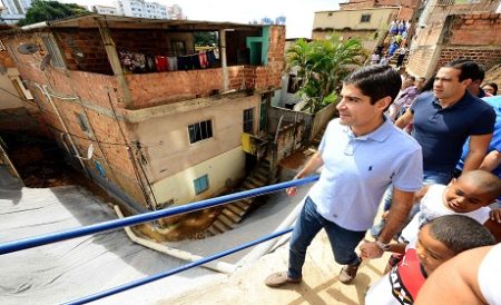 Em ritmo de sambão, os moradores da Travessa Portugal, em Luiz Anselmo, comemoraram a ação de cobertura de geomanta na encosta da localidade, promovida pela Prefeitura. A entrega oficial da intervenção foi feita pelo prefeito ACM Neto e pelo vice Bruno Reis,