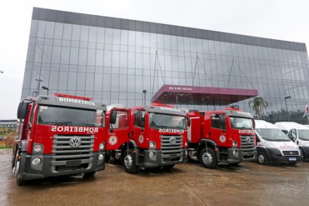 O Corpo de Bombeiro Militar da Bahia recebeu, nesta terça-feira (19), 18 caminhões auto bomba tanque de última geração, com capacidade para 12 mil litros de água cada um. Unidades do Corpo de Bombeiros de Salvador, Feira de Santana, Cachoeira, Itabuna, Ilhéus, Camaçari, Lauro de Freitas, Simões Filho, Madre de Deus, Santo Antônio de Jesus, Vera Cruz, Teixeira de Freiras, Valença, Alagoinhas e Bom Jesus da Lapa receberam novos veículos.