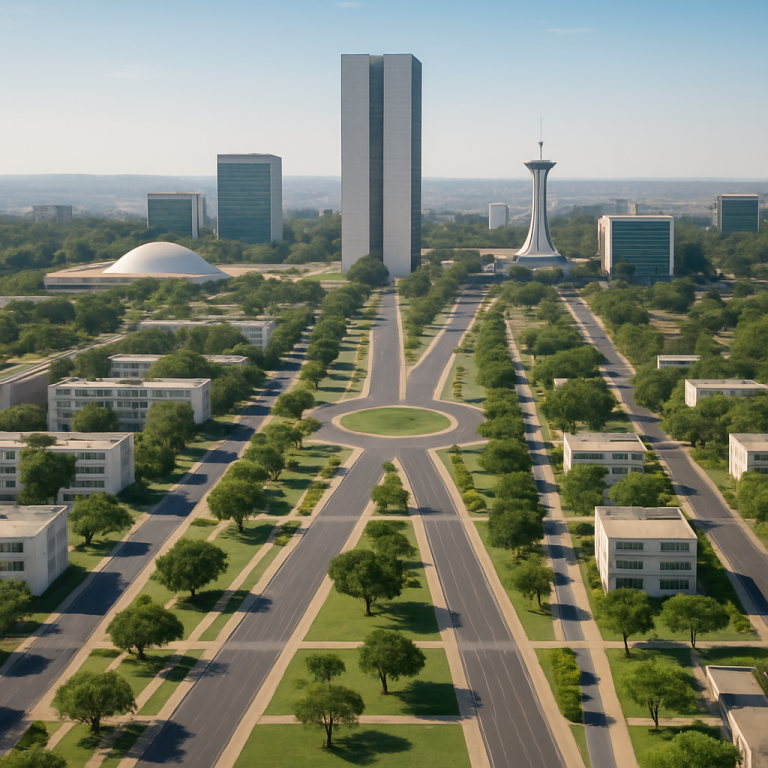 Um exemplo emblemático é Brasília, inaugurada em 1960 para ser a nova capital do país. Idealizada por Lúcio Costa e com monumentos projetados por Oscar Niemeyer, a cidade foi concebida para descentralizar o poder político do eixo Rio-São Paulo e impulsionar o desenvolvimento do interior brasileiro. Seu plano-piloto, em forma de avião, previu zonas específicas para moradia, trabalho, lazer e governo, o que conferiu à cidade uma lógica funcional que ainda impressiona urbanistas do mundo inteiro.