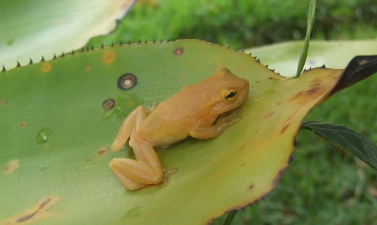 “Isso foi por volta de 2007, em Uruçica [município a cerca de 40km de Ilhéus], quando fazíamos o inventário dos anfíbios a pedido da dona de uma RPPN [Reserva Particular do Patrimônio Natural, um tipo de unidade de conservação particular]. Foi ali que, pela primeira vez, ouvimos o canto diferenciado dessa perereca que tem sua vida intimamente ligada às bromélias”, lembrou o pesquisador.