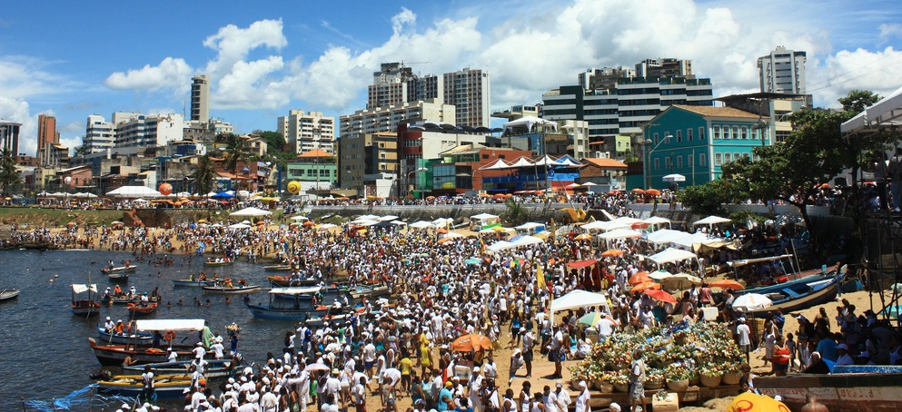 No Rio Vermelho, a procissão para entrega do presente no mar, junto com aproximadamente 500 balaios com as oferendas entregues pela população, acontece às 15h30. As ruas do bairro ficam tomadas de baianos, turistas, religiosos, simpatizantes e curiosos, que se aglomeram para assistir à saída das embarcações com os presentes. O encerramento oficial do evento religioso será às 18h, mas a parte profana segue durante a noite.