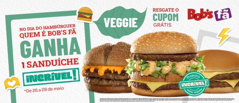 O Bob’s, primeira rede de fast food brasileira, vai celebrar o Dia Mundial do Hambúrguer, comemorado em 28 de maio, com ações promocionais em parceria com a Incrível!, líder no segmento de proteínas vegetais no Brasil, e a Coca-Cola Brasil, que visam agradar os amantes de um dos alimentos mais queridos dos brasileiros.