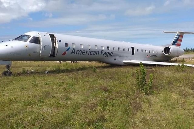 Nas imagens, o trem de pouso principal parece ter colapsado ou sido recolhido, mas não há informações se isso se deve à saída da pista para o terreno irregular ou a uma falha no próprio pouso.