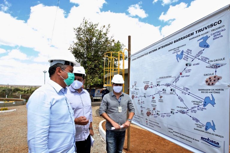 “Hoje nós estamos entregando mais de 41 km de adutora, pegando águas de vários mananciais diferentes, pra reforçar e garantir o fornecimento de água pra todas as comunidades. Junto a isso entregamos a rede e estação de tratamento de esgoto. É uma entrega muito importante pelo impacto direto na vida das pessoas”, afirmou o governador Rui Costa.