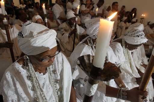 Nesta terça (13), vestidas de branco, as 32 mulheres que integram a Irmandade da Boa Morte saíram em cortejo da igreja da Nossa Senhora da D’Ajuda, acompanhadas pela imagem da Nossa Senhora da Boa Morte, com destino à capela que leva o nome da homenageada na festa.