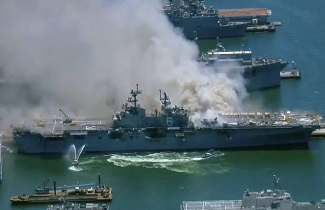 Trata-se de um navio anfíbio, o USS Bonhomme Richard, com 255 metros de comprimento. Ele estava aportado para manutenção de rotina. As causas do incêndio ainda não foram reveladas pelas autoridades e está sendo investigadas.