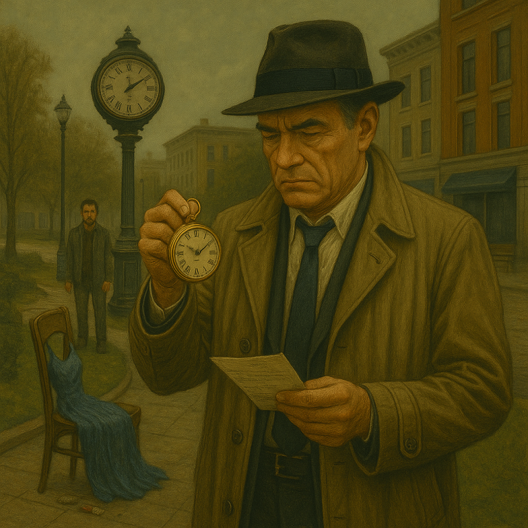 Um raro relógio de bolso sumiu do Museu da Cidade durante a troca de turno. A única visitante naquele horário era Clara, uma colecionadora conhecida por suas disputas por antiguidades. Quando os seguranças notaram o sumiço, ela já estava longe, mas voltou por vontade própria ao saber do ocorrido, jurando inocência.