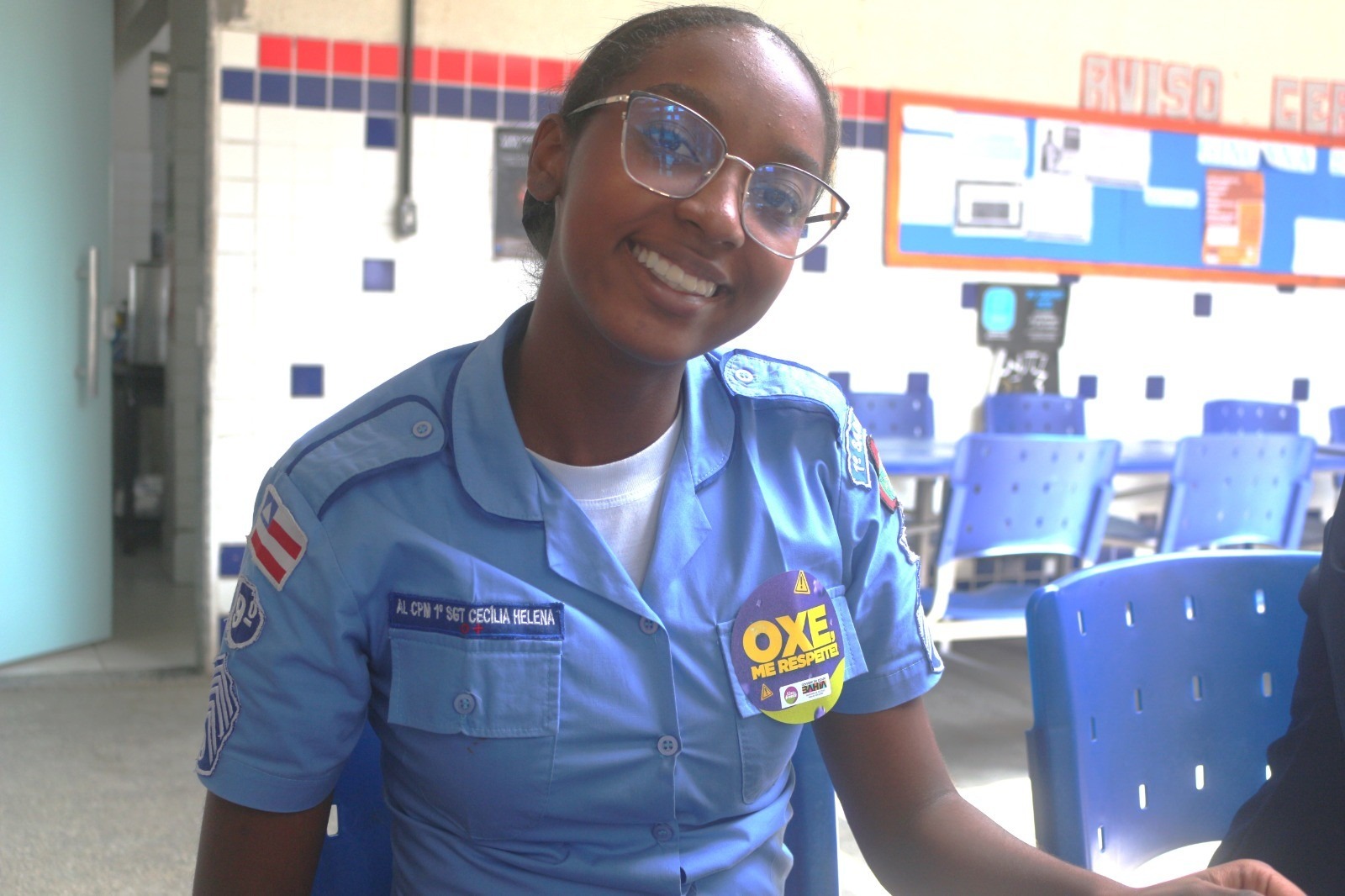 No Colégio da Polícia Militar Diva Portela, em Feira de Santana, na Bahia, a aluna Cecília Cardoso de Jesus, 15 anos, fala com clareza sobre o que aprendeu nos últimos meses. “A gente aprendeu que o corpo da mulher não é vitrine. Que ‘não’ é ‘não’ e que as pessoas precisam respeitar isso.”